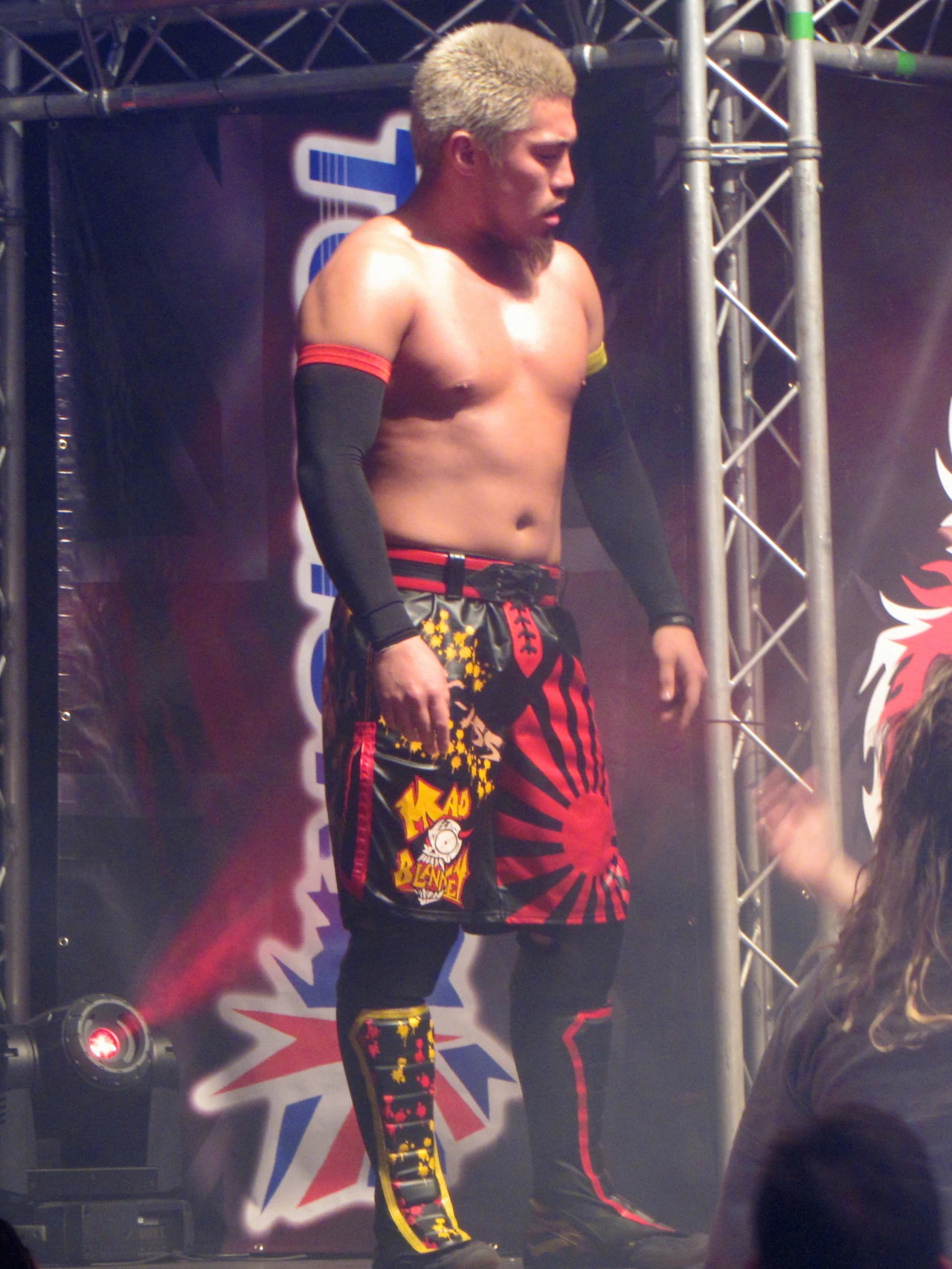 Upon his return, Tozawa was treated as a serious competitor and given a major push, which included defeating Shingo Takagi on July 17 at Kobe Pro Wrestling Festival 2011.[39] In August, Tozawa and fellow Blood Warriors member BxB Hulk took part in the 2011 Summer Adventure Tag League, where they ultimately defeated Masaaki Mochizuki and Yamato of rival group Junction Three to win the tournament.[40] On the September 16, Tozawa defeated rival Yamato in a no ropes, no disqualification match.[41] This led to Tozawa challenging Masaaki Mochizuki for the Open the Dream Gate Championship on October 13, but Tozawa was defeated.[42] On December 1, Tozawa and BxB Hulk defeated Kagetora and Susumu Yokosuka to win the vacant Open The Twin Gate Championship, Tozawa's first title in Dragon Gate.[43] On January 19, 2012, Tozawa and Hulk turned on Blood Warriors leader Cima, causing him to lose a ten-man "Loser Leaves Unit" tag team match; as a result, Cima was kicked out of Blood Warriors.[44] After this match, Tozawa assumed the leader role inside Blood Warriors. On January 29, Tozawa made a one night return to PWG, when he teamed with Kevin Steen and Super Dragon in a six-man tag team main event, where they were defeated by El Generico, Masato Yoshino and PAC.[45] On February 9, the Tozawa-led Blood Warriors won their feud with Junction Three by defeating them in a fourteen-man elimination tag team match, forcing their rival group to disband.[46] On March 1, Tozawa renamed the Blood Warriors as MAD BLANKEY.[47] Three days later, he and BxB Hulk lost the Open the Twin Gate Championship to Jimmy Kagetora and Jimmy Susumu.[48]