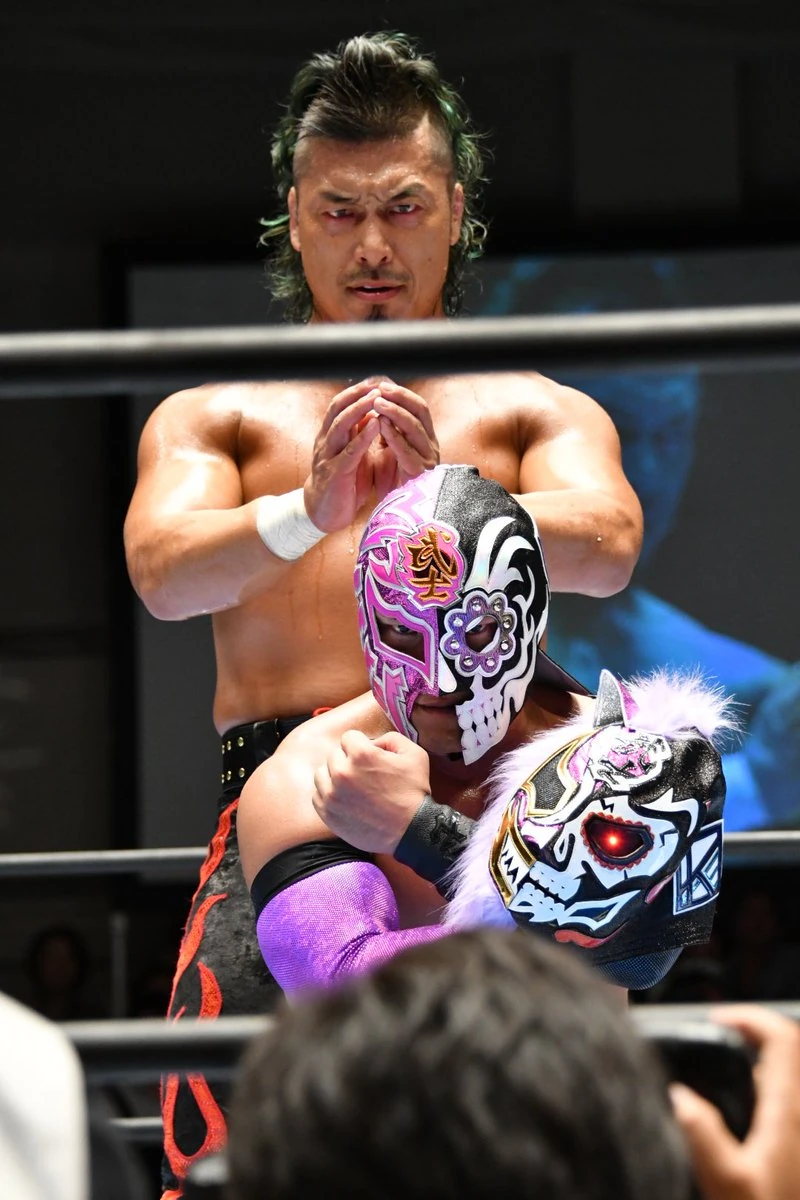 Takagi, and BUSHI (below) during the Super Jr. Tag League.